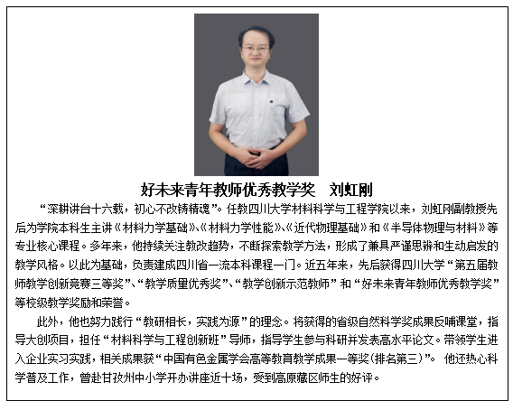 一年来,我院教职工认真贯彻党的教育方针,坚持立德树人,恪守职业操守,在教学、科研、管理等岗位上辛勤工作、无私奉献,推动学院各项事业不断取得新的进步,6名教师受到皇冠登陆入口welcome表彰,他们是:吴朝玲(卓越教学奖)、曾广根(姜维平课程建设奖)、刘虹刚(好未来青年教师优秀教学奖)、杨晓娇(好未来青年教师优秀教学奖)、连利仙(优秀共产党员)、武开鹏(先进个人)。祝贺每一位获奖教师,希望全院教职工以受到表彰的先进典型为榜样,不忘立德树人初心,牢记为党育人、为国育才使命,以更加饱满的热情、更加昂扬的斗志、更加扎实的作风,共同谱写皇冠高质量发展的新篇章。