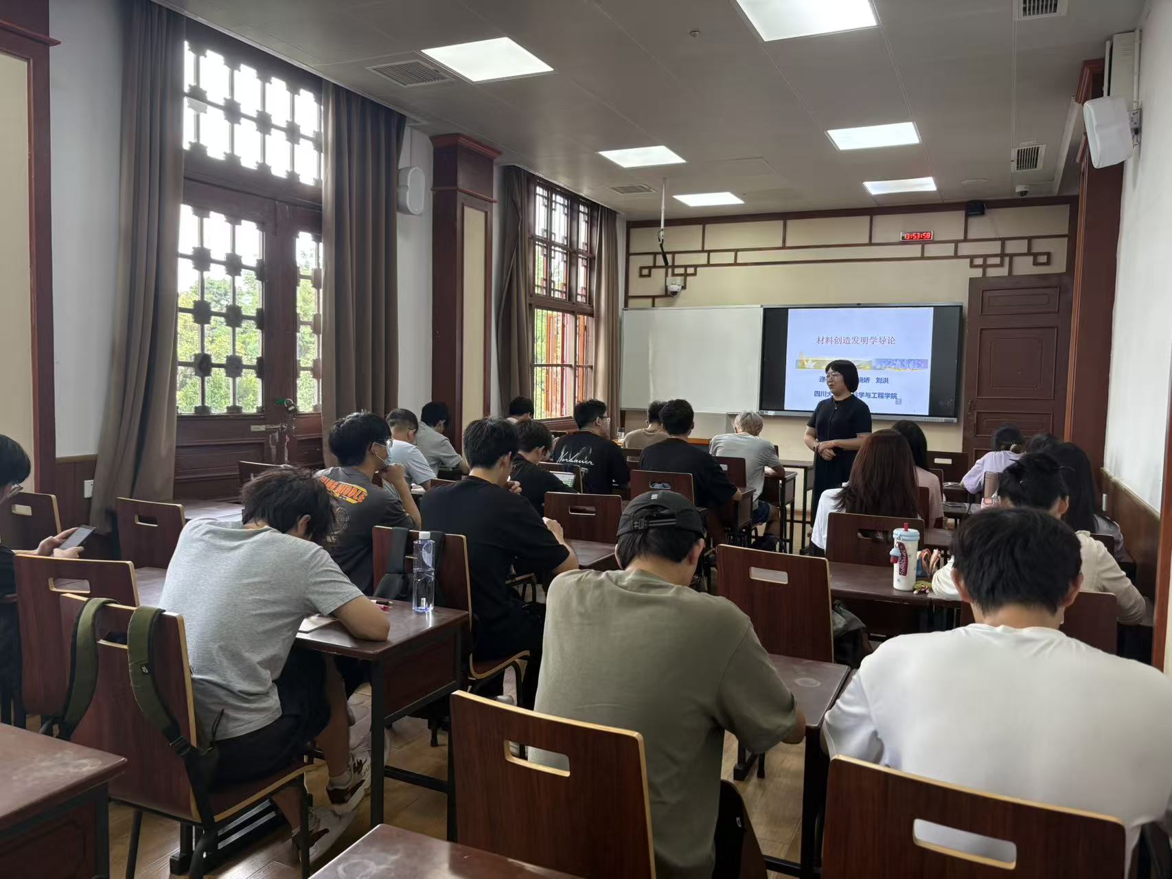 全体教师严格执行“提前15分钟到岗”要求,进行课前调试设备、梳理教案,了解选课学生概况,确保课堂“零延误”。授课教师仪表规范、备课充分;授课内容详实,注重课程思政融入;教师熟练使用智慧教室扫码签到、随机点名、弹幕提问等功能,公开联系方式并建立课程群,延伸课后辅导,强化师生互动。