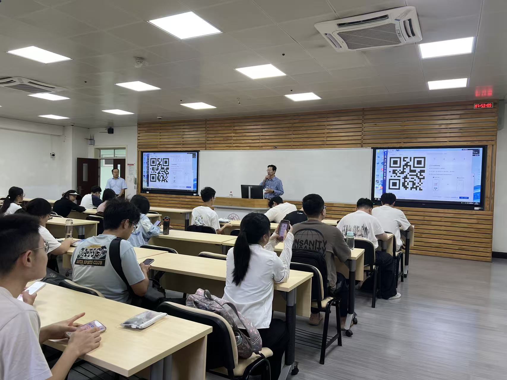 依托智慧教室平台实时监控课堂到课率,教师通过扫码签到、线上互动等功能强化课堂管理,提升教学信息化水平。