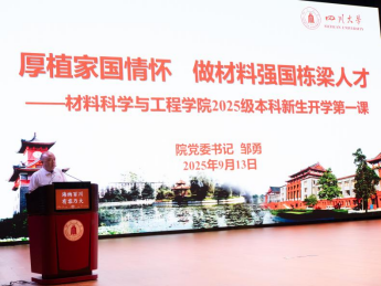 邹勇书记以“厚植家国情怀,做材料强国栋梁人才”为题为新生讲述开学第一课。以钱学森、师昌绪、涂铭旌等科学家的家国情怀来激励新生们立志做材料人才,并以大量实例讲述了材料创新为中国迈向制造强国所发挥的核心支撑作用,勉励新生们积极主动拥抱大学生活,争做栋梁之才。