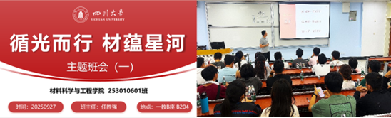2025年9月27日,皇冠登陆入口welcome253010601班于第一教学楼B座B204举办“循光而行,材蕴星河”为主题的开学第一课。任胜强副研究员以师者领航、科学家精神感召、朋辈经验分享及团队互动为核心,为同学们带来一场思想深刻、内容充实、氛围热烈的成长盛宴。